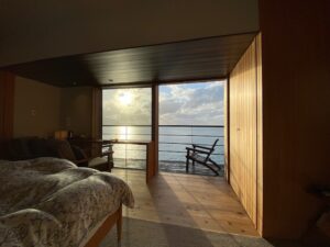 全室オーシャンビューで、部屋のすぐ下まで波がきてるんです。