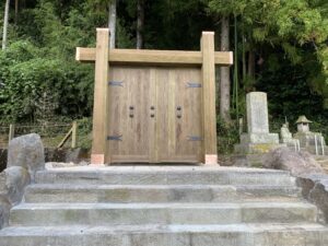 その城跡入り口に門を建てさせていただきました。